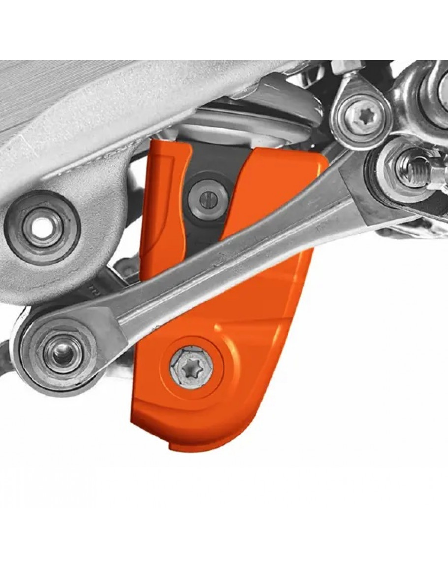 - Vyrobené z vysoko odolného termoplastu na ochranu najexponovanejšej časti tlmiča pred nárazmi a poškriabaním o kamene a kmenov stromov.